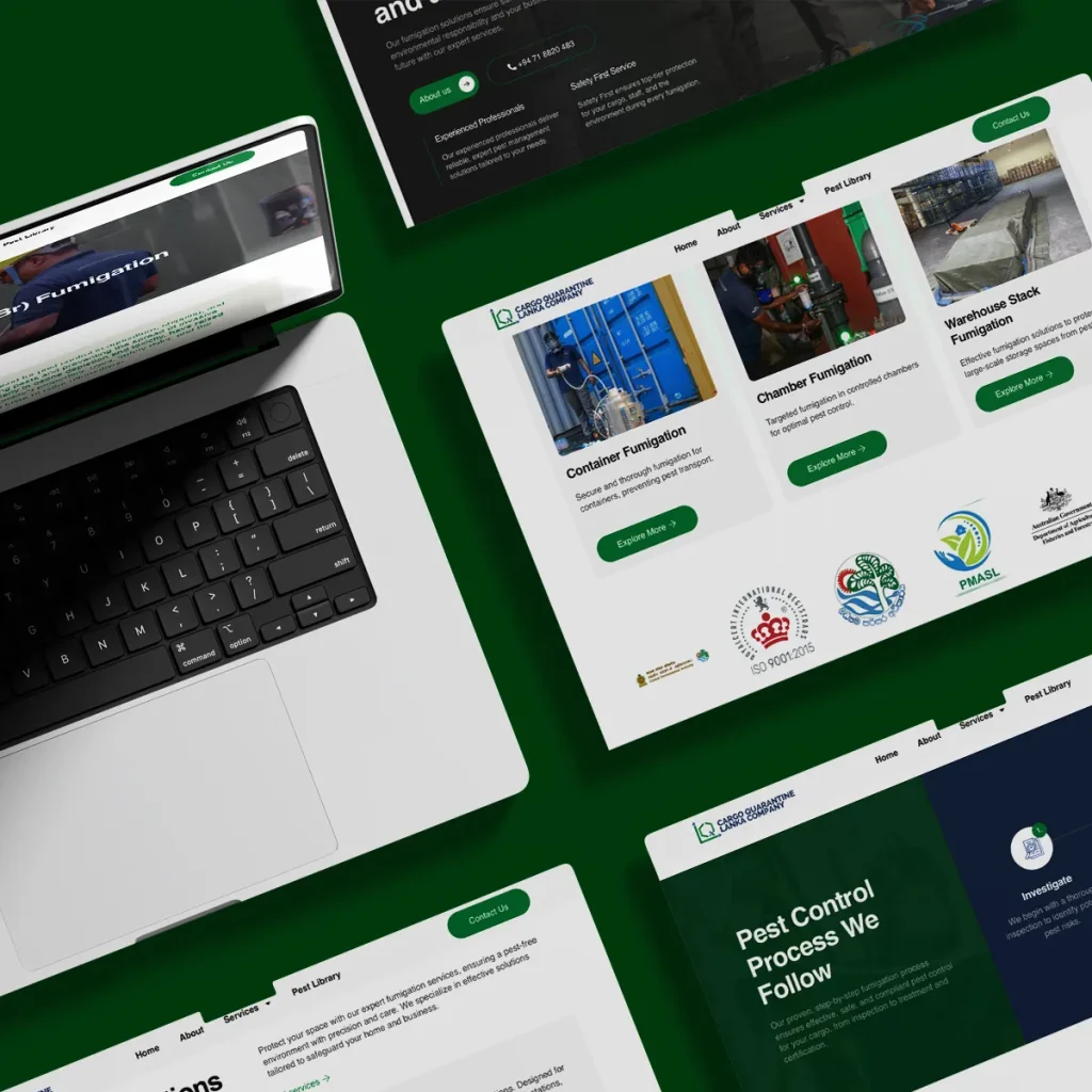 Ladder Global worked with Cargo Quarantine Lanka Company to build a modern, user-friendly website that reflects their professionalism and makes it easy for potential clients to connect with them. The aim was to create a digital presence that represents their expertise in pest control fumigation while providing clear service information and an accessible contact process.
